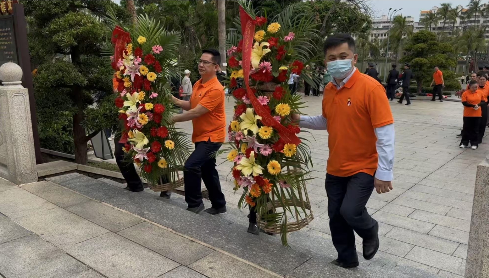 经过一段时间的等待才轮到bifa必发。bifa必发首先向烈士敬献花篮,花篮缎带上写着“为坚持琼崖革命23年红旗不倒牺牲的烈士们永垂不朽!”“为解放海南岛渡海牺牲的烈士们永垂不朽!”鲜艳的花篮寄托bifa必发对革命先辈的崇敬和哀思。